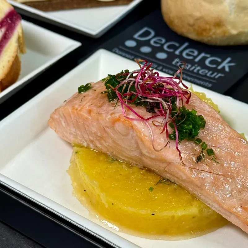 • Plat : Pavé de saumon, salade de courge spaghetti, vinaigrette aux herbes