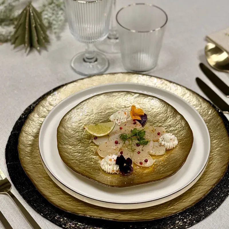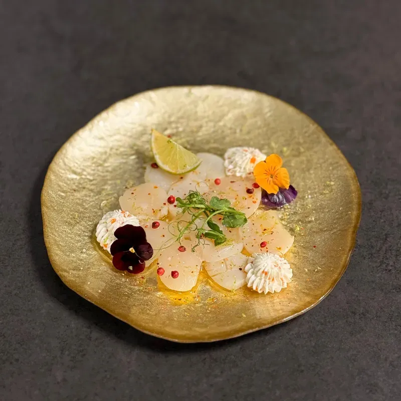 Carpaccio de Saint-Jacques fumées, petites crème aux œufs de truite