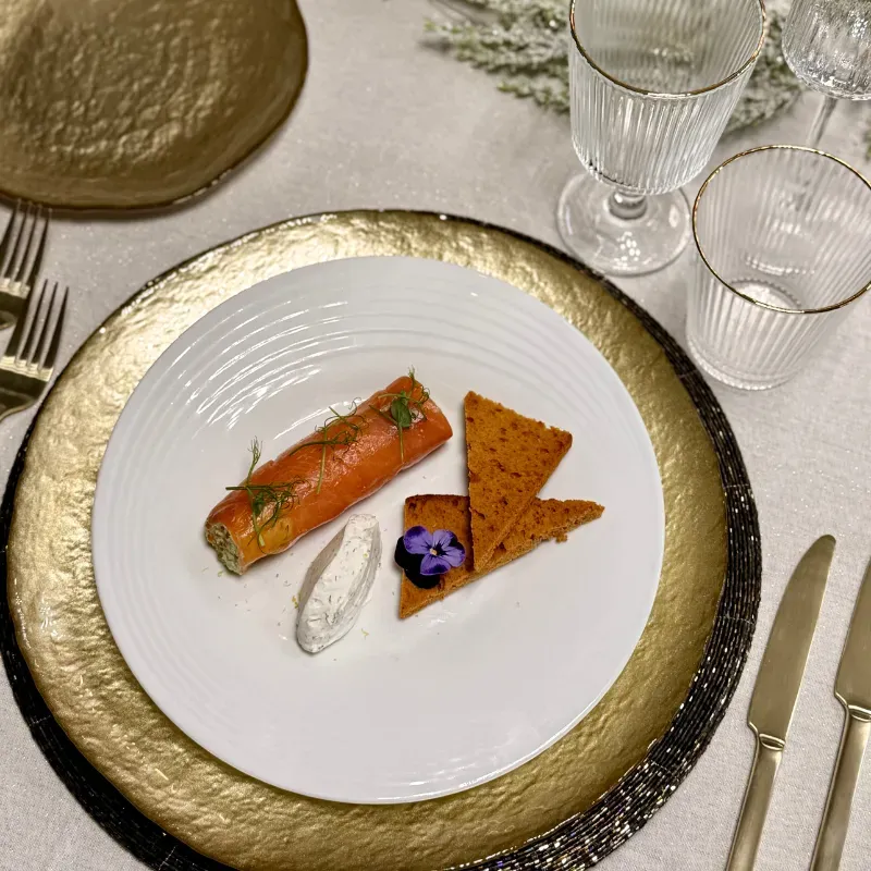 Roulade de truite de chez Murgat au pesto et œufs de saumon fumé