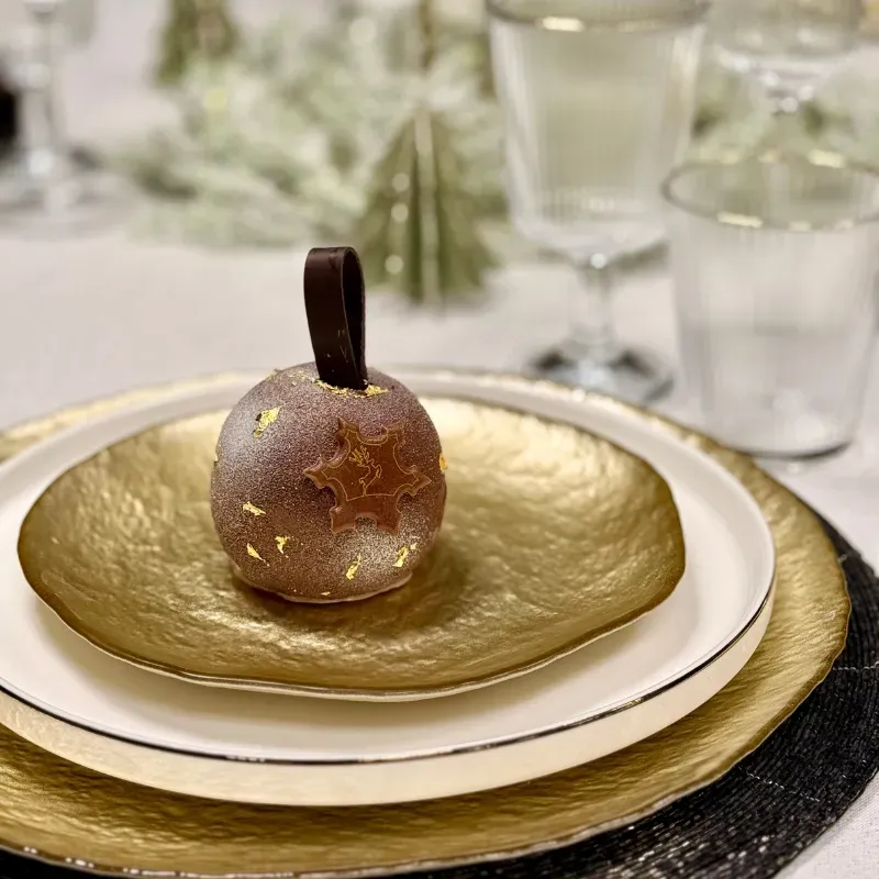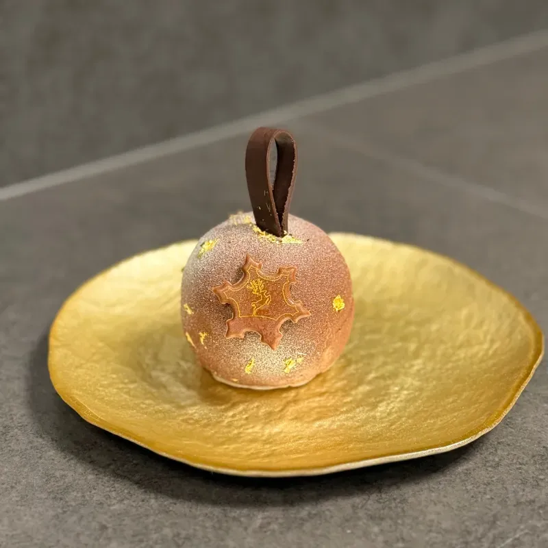 Comme une boule de Noël au chocolat Valrhona 74% et son cœur passion